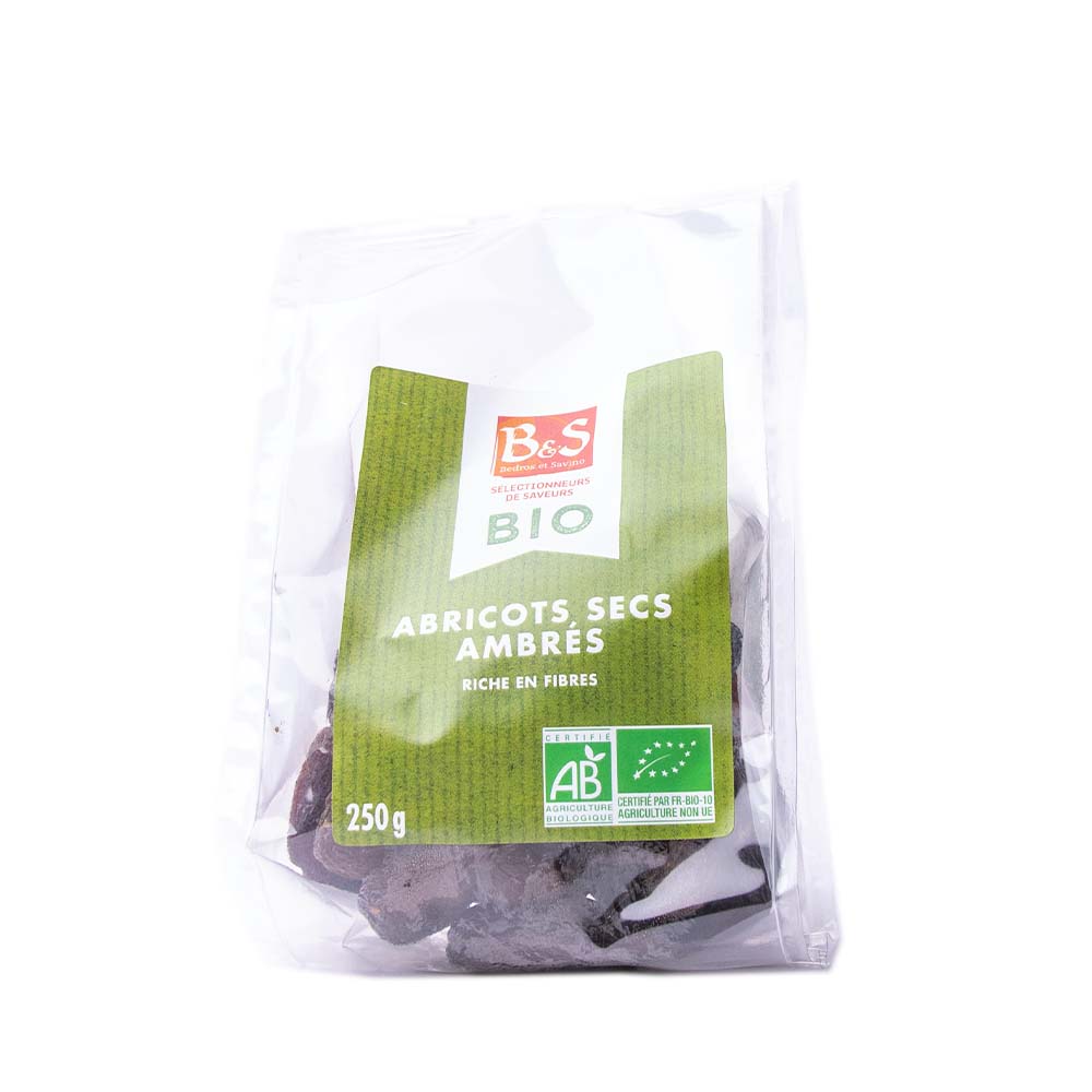 L’abricot sec ambré est une bonne source de fibres et de minéraux (Magnésium, Potassium, Phosphore, manganèse, Fer, Cuivre).