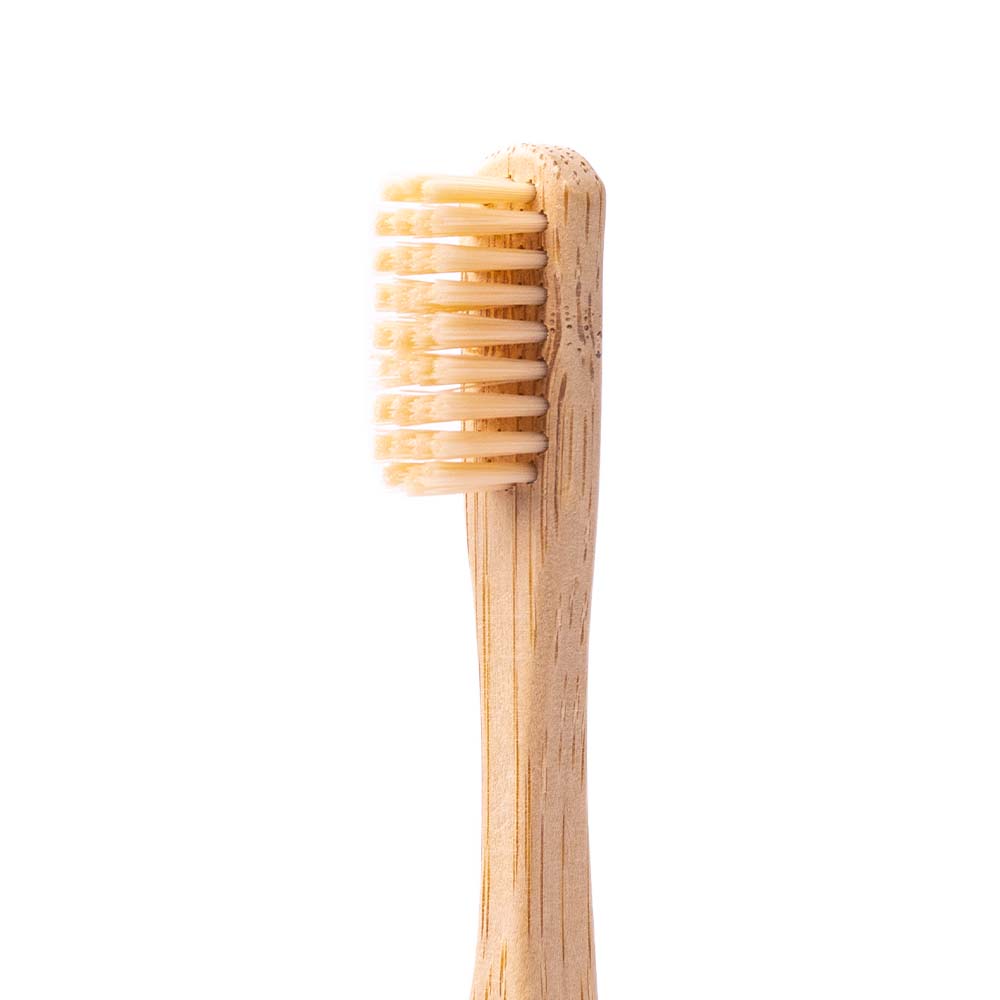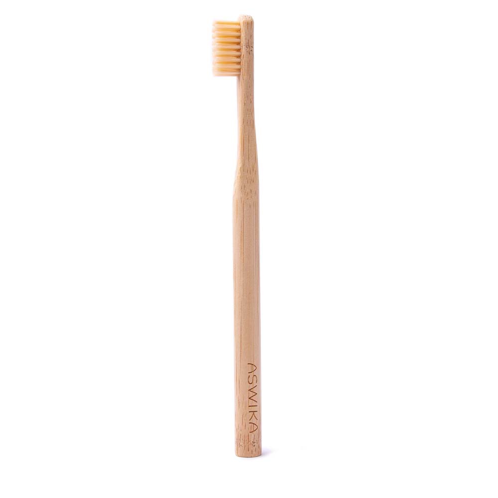 Cette brosse à dents écologique avec manche en bambou est entièrement biodégradable.