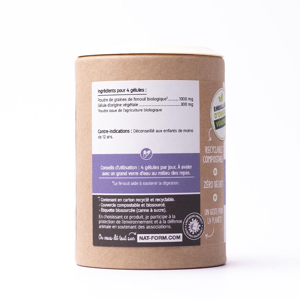 Complément alimentaire à base de fenouil Bio. Les compléments alimentaires doivent être utilisés dans le cadre d’un mode de vie sain et ne pas être utilisés comme substituts d’un régime alimentaire varié et équilibré.
