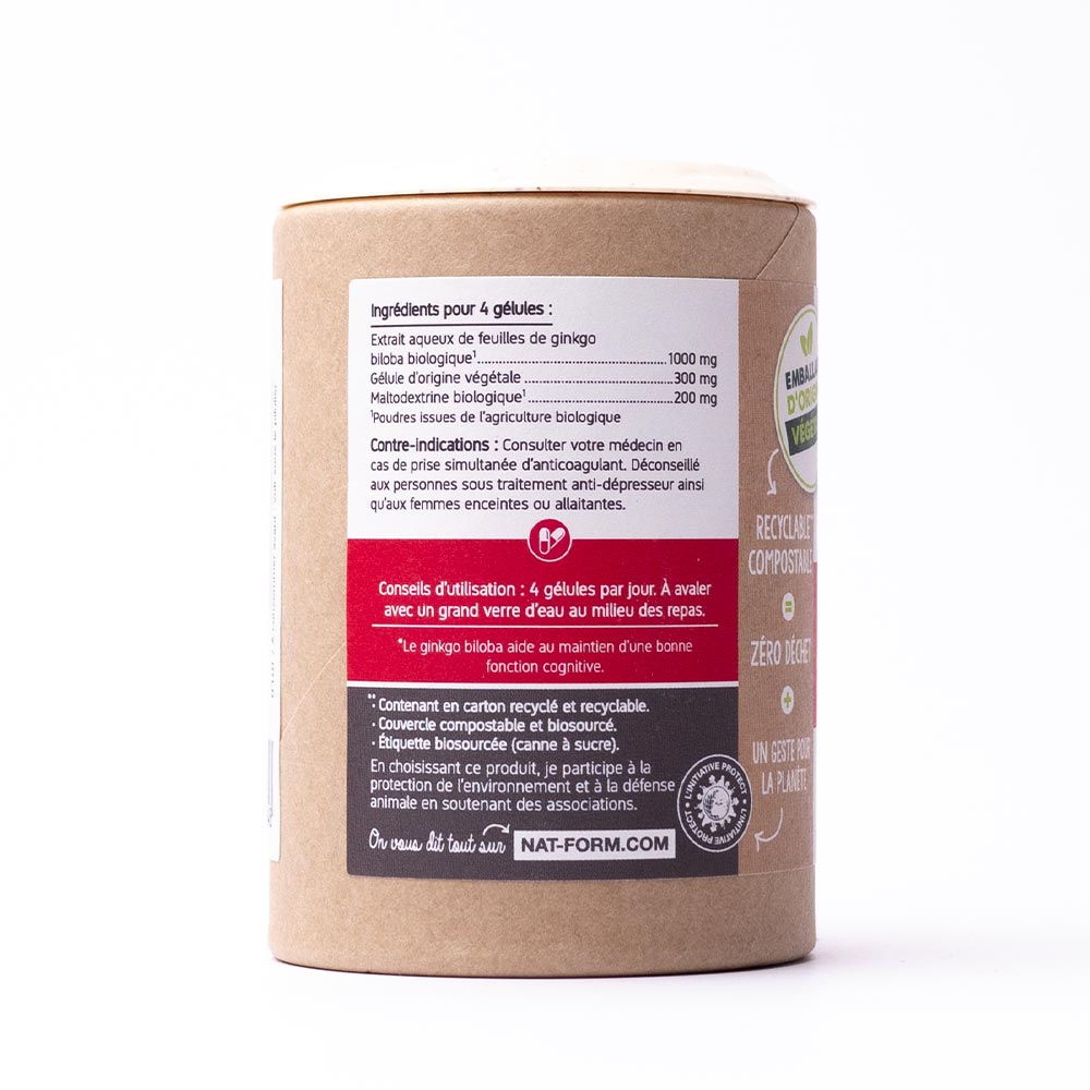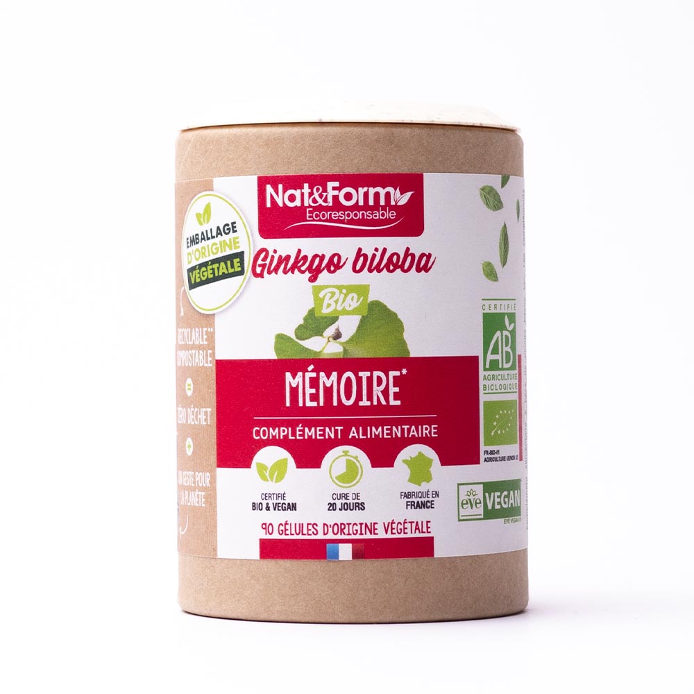 Complément alimentaire à base de ginkgo biloba Bio. Les compléments alimentaires doivent être utilisés dans le cadre d’un mode de vie sain et ne pas être utilisés comme substituts d’un régime alimentaire varié et équilibré.