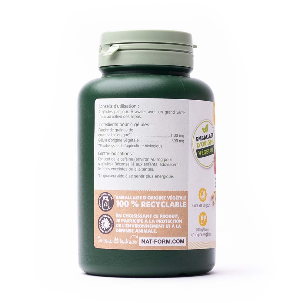 Ingrédients : pour 4 gélules poudre de graines de guarana biologique* 1100 mg