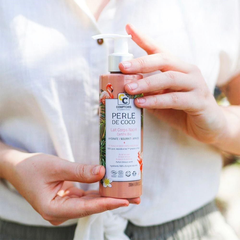 Ce lait nacré pour le corps PERLE DE COCO agit en véritable soin des peaux sèches et sensibles.