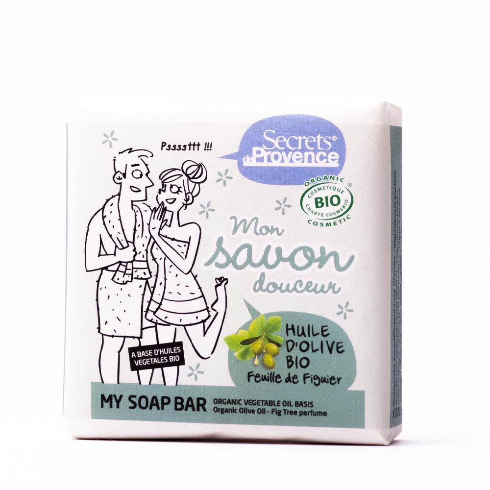 Le secret de sa douceur : des huiles végétales certifiées bio, une pincée d’huile d’olive et de glycérine, elles aussi certifiées bio, et son parfum ensoleillé feuille de figuier.